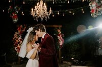 The transparent cover over the ceremony space with crystal chandeliers and cafe lighting elevates the garden to a high level of elegance & romantic ambiance.
